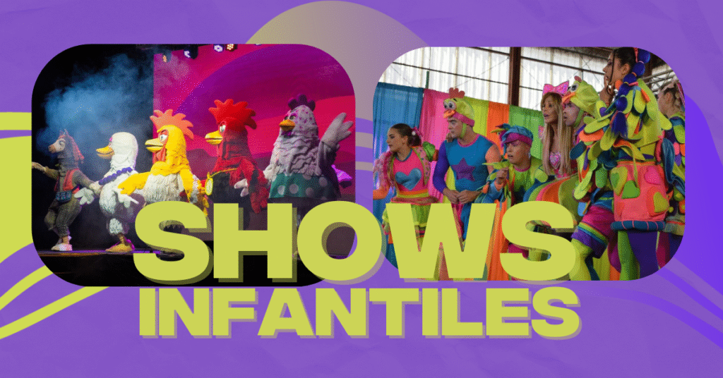 Pero eso no es todo en cuanto a shows infantiles, ya que contamos con las últimas obras para chicos, los espectáculos que se han destacado por sus canciones, juegos, participación con el público, sus animadores y personajes, y todo el gran despliegue en escena para entretener a toda la familia, entre ellas están: Canciones de la Granja, Canticuenticos, Peppa Pig, el Universo de Lourdes, el Payaso Plim Plim, Rock bones, entre otros.